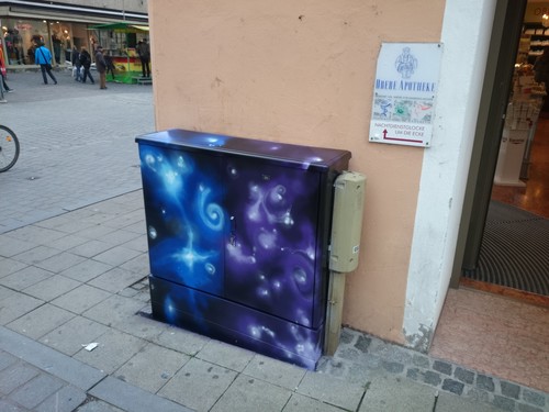 In Zusammenarbeit mit den Ingolstädter Stadtwerken wurde 2015 das Graffiti-Projekt "Stromkastomize" ins Leben gerufen, bei dem junge Ingolstädter Nachwuchs-Sprayer:innen aus der FRONTE79 Stromkästen der Stadtwerke mit Graffiti kunstvoll besprayen. Falls Du auch Lust hast mal einen Stromkasten zu sprayen - einfach in der Fronte79 informieren und bei den dortigen Graffiti-Workshops mitmachen!