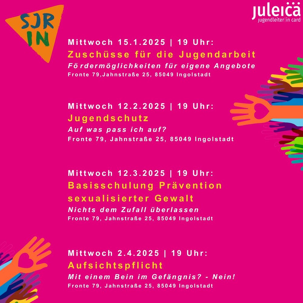Die Infoabendreihe wird beim Stadtjugendring auch als Fortbildung für die Verlängerung der Juleica anerkannt.