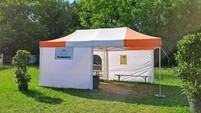 Unsere Pavillions werden in Transporttaschen mit Seitenwänden und Gewichten ausgeliehen.