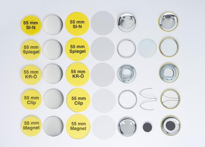 Neben den herkömmlichen Buttos können wir auch Rohlinge für Flaschenöffner, Spiegel, mit Clip od. Magnete für Euch bestellen.