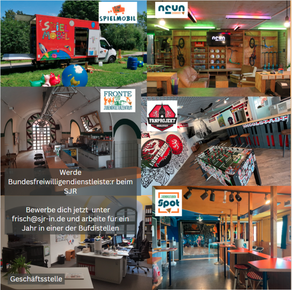 Der Stadtjugendring Ingolstadt sucht laufend Bundesfreiwillige die uns in unseren Einrichtungen und bei Angeboten wie Fronte79, Neun, Spot, Kommunale Jugendarbeit, Ferienpass, Fachstelle Politische Bildung, Spielmobil, Jugendbildungshaus, Zeltlagerplatz, Gerätepark uvm. unterstützen.