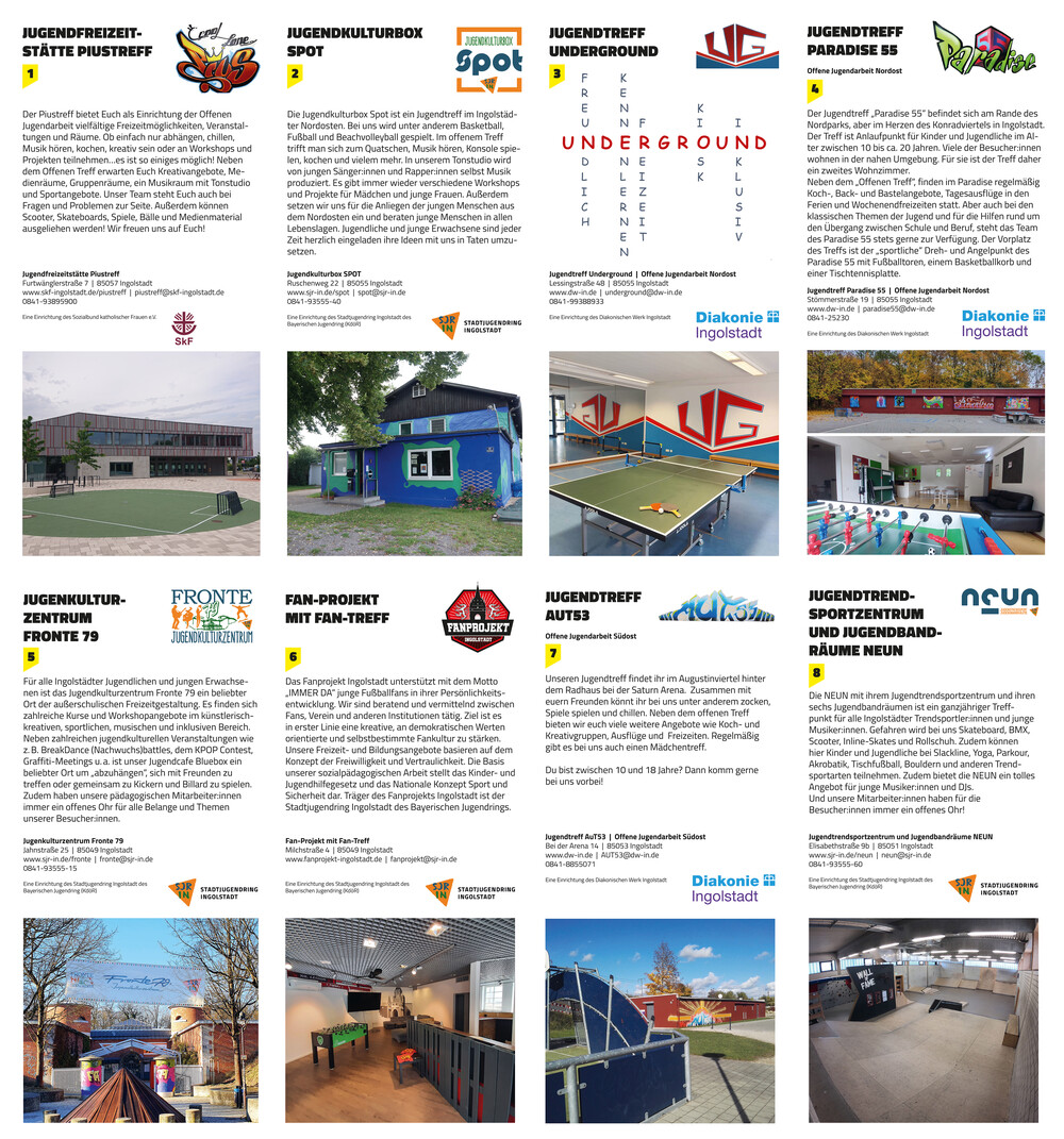 In Ingolstadt gibt es noch weitere Einrichtungen der offenen Kinder- und Jugendarbeit  wie z.B. den Piustreff oder die Jugendtreffs AUT 53 und Paradise 55 die vom Sozialdienst Katholischer Frauen, dem Diakonischen Werk und der Gesamtkirchenverwaltung betrieben werden.